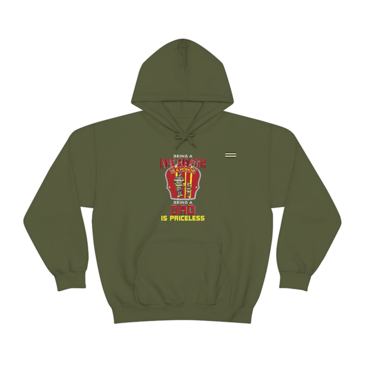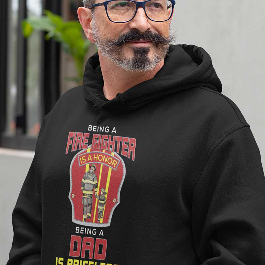 This is a "Being a Firefighter is an Honor Being a Dad is Priceless Hoodie" to respect and honor the Firefighters who put their lives at risk to save life of others lives.