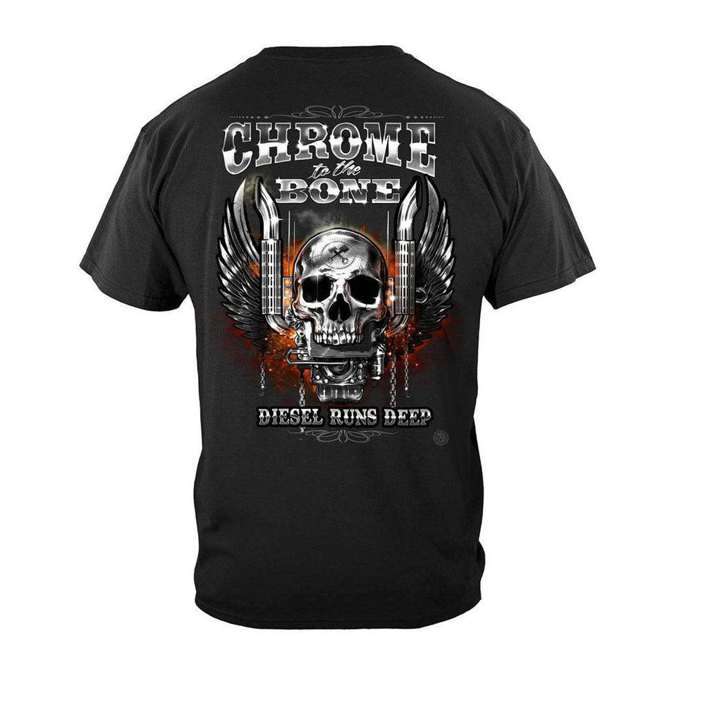 Our vibrant worker screen printed "Chrome in the Bone CTTB Diesel Runs Deep" Trucker T-shirt comes in all sizes to fit most men and women. It features 100% cotton material with a colorful screen print design.