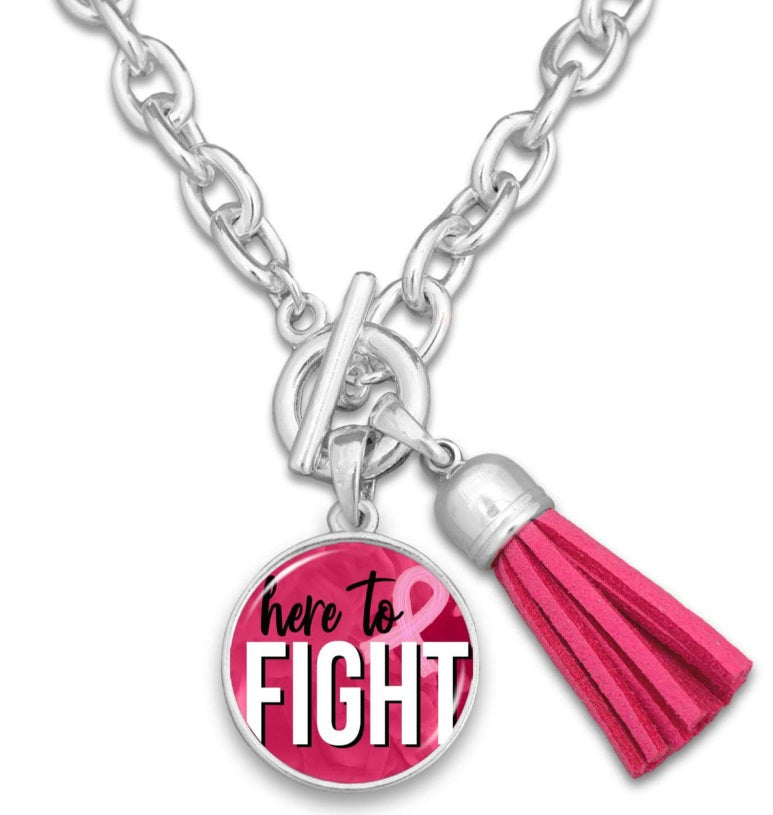 Great Necklace to help raise awareness on breast cancer and support the race for a cure for cancer. Makes a bold statement where ever you go support cure for breast Cancer - Order this Here to Fight Pink Ribbon Necklace!