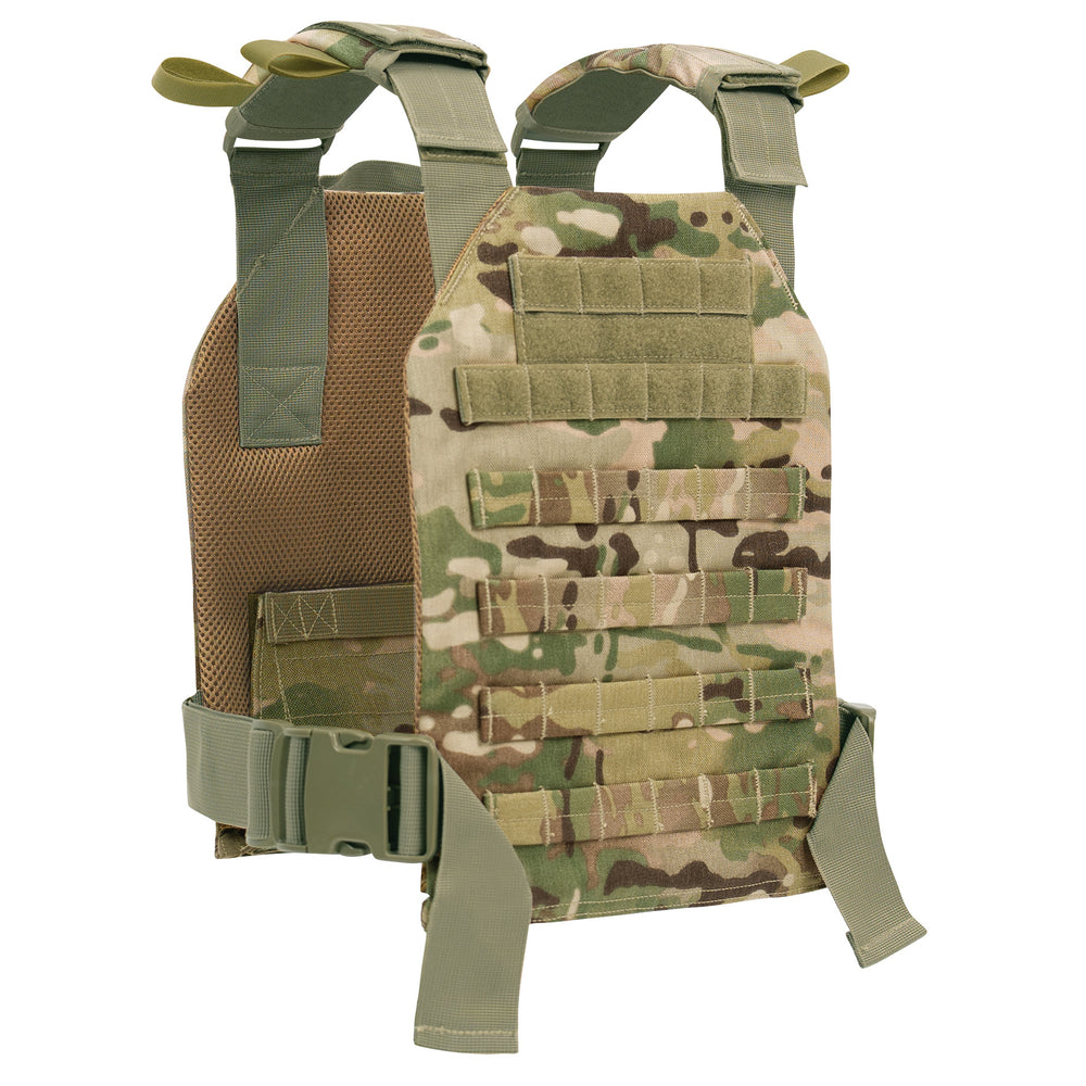 Rothco’s Low Profile Plate Carrier Vest is specially crafted to optimize your tactical loadout with a minimalist design that supports quick movements in the field. The front and back of the plate carrier vest each feature 7 rows of MOLLE webbing for mounting holsters, mag pouches, and more. The top three rows of MOLLE webbing on the front and back of the lightweight plate carrier feature loop material for adding flags and morale patches. The hook and loop adjustable shoulder straps on the MOLLE vest are enclosed within an additional hook and loop closure for finsding and maintaining the perfect fit (shoulder straps measure 2.13 inches wide). The adjustable plate carrier cummerbund secures via buckle closures and features a hook and loop closure at the end of each web strap for organizing excess webbing. The front and back panels are built with breathable and comfortable mesh ventilation for optimal cooling airflow. The minimalist plate carrier features two hook and loop closures over each shoulder strap for hydration hose integration. This army plate carrier vest is perfect for soldiers, public safety, and MilSim players. The vest fits medium or large SAPI/ESAPI plates up to 10 inches x 13 inches.
