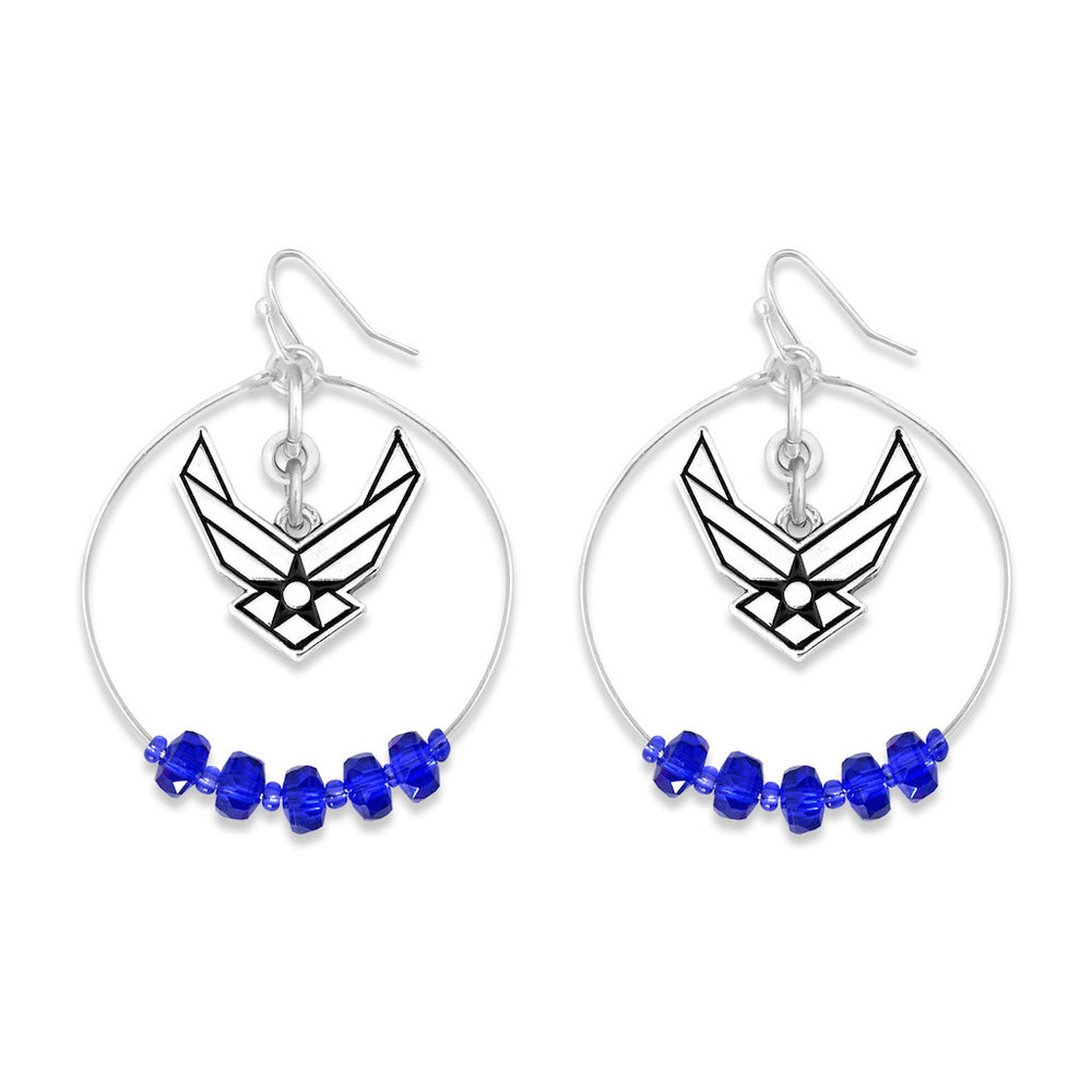 This Pair of U.S. Air Force Chloe Earrings is a perfect gift for Air Force women. These Air Force Chloe Earrings are hypoallergenic and free from lead, nickel, and cadmium. The charms are standard medium-sized, and measure around one inch.