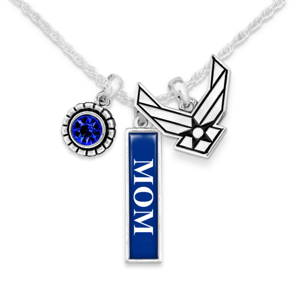 This U.S. Air Force® Necklace- Triple Charm- Vertical MOM Charm is a perfect gift for all Air Force Moms or to someone who has a family member serving in the Air Force. Buy one for yourself or as a gift to others as a way to show your support for your armed forces American hero.
