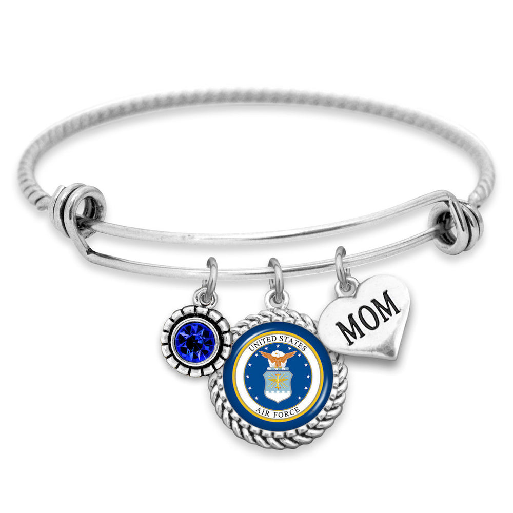 This U.S. Air Force® Olivia Bracelet with MOM Accent is perfect for MOM's in an Air Force man's life. This Air Force bracelet is hypoallergenic and free from lead, nickel, and cadmium.