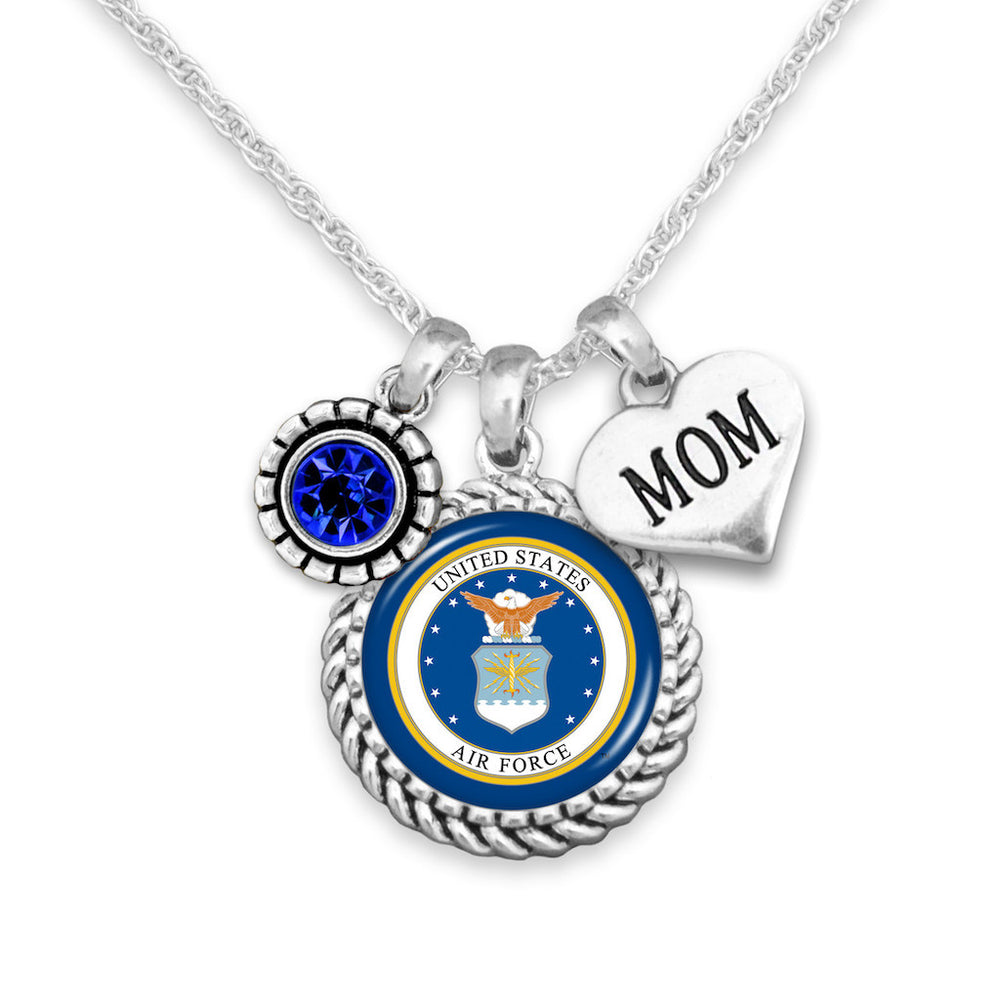 This U.S. Air Force® Olivia Necklace with Mom Accent is perfect for Mother in an Air Force's life. This Air Force necklace is hypoallergenic and free from lead, nickel, and cadmium.