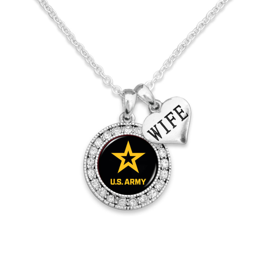 This US ARMY Wife Round Crystal Necklace is a great gift for ARMY wives to show your support for your loved one. This ARMY necklace is hypoallergenic and free from lead, nickel, and cadmium. This piece of ARMY necklace is sterling plated, then coated with an anti-tarnish formula.