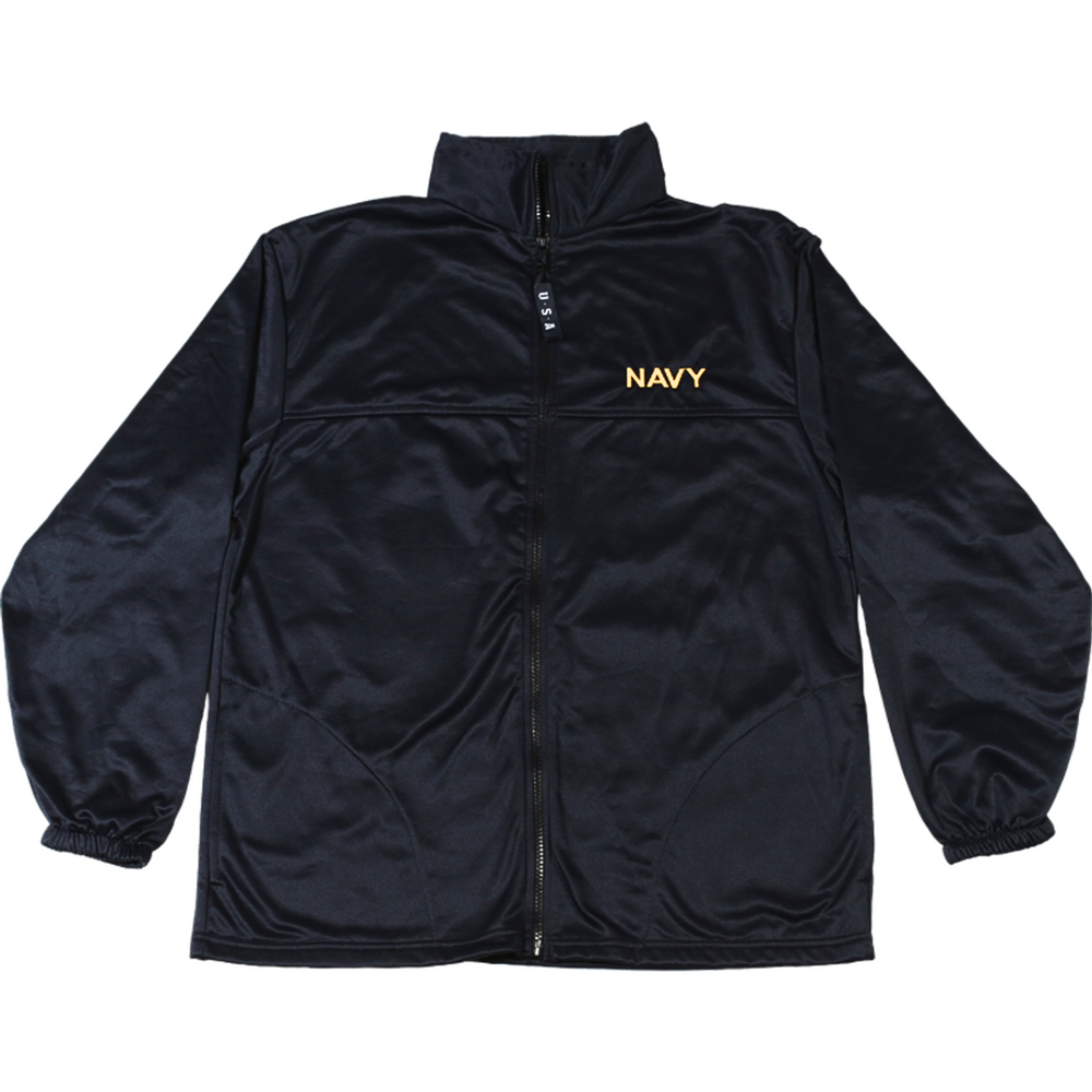 Stay stylish and dry with this lightweight, water-resistant US Navy Soft Shell Jacket- Made in the USA made in America from 100% polyester. It has a cozy fleece lining, a stand-up collar, a full front zip, elastic cuffs, and two side pockets. Featuring "US Navy" embroidered on the chest, this classic jacket will proudly display your Navy pride for years!
